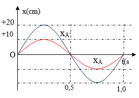 Điểm sáng A đặt trên trục chính của một thấu kính, cách thấu kính 10cm. Chọn trục tọa độ Ox vuông góc với trục chính của thấu kính, gốc O nằm trên trục chính của thấu kính. Cho điểm sáng A dao động điều hòa theo phương của trục Ox. Biết phương trình dao động của điểm sáng A và ảnh A’ của nó qua thấu kính được biểu diễn bằng đồ thị như hình vẽ. Thời điểm thứ 2018 mà khoảng cách giữa điểm sáng A và ảnh A’ của nó là \(5\sqrt 5 \)cm có giá trị gần bằng giá trị nào sau đây?