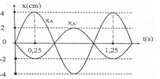 Điểm sáng A đặt trên trục chính của một thấu kính, cách thấu kính 30cm. Chọn trục toạ độ Ox vuông góc với trục chính, gốc O nằm trên trục chính của thấu kính. Cho A dao động điều hoà theo phương của trục Ox. Biết phương trình dao động của A và ảnh A’ của nó qua thấu kính được biểu diễn như hình vẽ. Tiêu cự của thấu kính là :