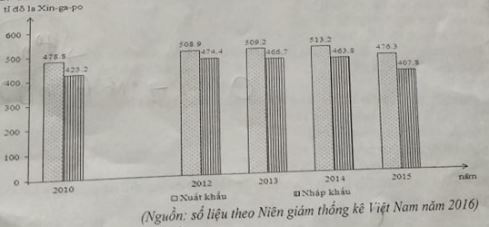 Cho biểu đồ về xuất, nhập khẩu của Xin-ga-po qua các năm