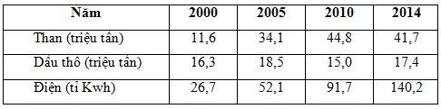 Cho bảng số liệu SẢN LƯƠNG THAN, DẦU THÔ VÀ DIỆN CỦA NƯỚC TA QUA CÁC NĂM (Nguồn: Niên giám