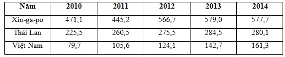 (Nguồn: Niên giám thống kê Việt Nam 2015, NXB thống kê, 2016)