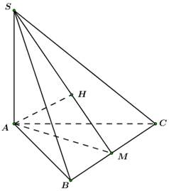 Kẻ \(AH \bot SM \Rightarrow AH \bot \left( {SBC} \right)\)\( \Rightarrow h = d\left( {A;\,\,\left( {SBC} \right)} \right) = AH.\)
