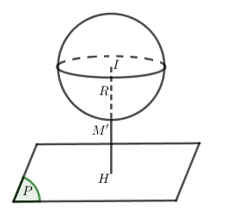 - Dựng hình, tìm vị trí điểm \(M \in \left( S \right)\) sao cho \(d\left( {M,\left( P \right)} \right)\) đạt GTNN.