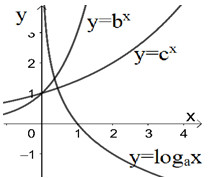 Cho các hàm số \(y = {\log _a}x,y = {b^x},y = {c^x}\) có đồ thị như hình bên. Chọn khẳng định đúng.