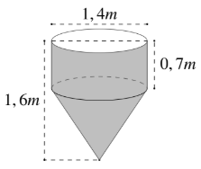 Người ta làm một dụng cụ sinh hoạt gồm hình nón và hình trụ như hình vẽ (không có nắp đậy trên). Cần bao nhiêu \({m^2}\) vật liệu để làm (các mối hàn không đáng kể, làm tròn kết quả đến một chữ số thập phân sau dấu phẩy)?