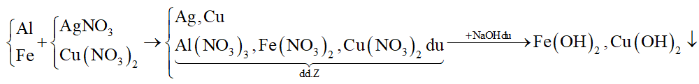 Cho hỗn hợp X gồm bột Al, Fe vào dung dịch chứa AgNO3 và Cu(NO3)2, sau phản ứng thu được hỗn hợp Y gồm 2 kim loại và dung dịch Z. Cho NaOH loãng, dư vào dung dịch Z thu được 2 kết tủa gồm 2 hidroxit kim loại. Dung dịch Z có chứa những chất nào sau đây?