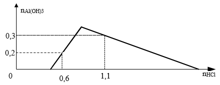 Cho từ từ dung dịch HCl vào dung dịch A chứa a mol Ba(OH)2 và b mol Ba(AlO2)2. Đồ thị biểu diễn số mol Al(OH)3 theo số mol HCl như sau: