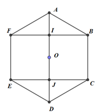 Cho hình lục giác đều \(ABCDEF\) cạnh Quay hình lục giác đều quanh đường thẳng AD, thể tích
