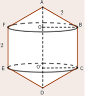Cho hình lục giác đều \(ABCDEF\) có cạnh bằng \(2\) (tham khảo hình vẽ). Quay lục giác xung quanh đường chéo\(AD\) ta được một khối tròn xoay. Thể tích khối tròn xoay đó là