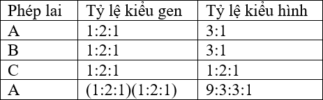 Về mặt lí thuyết, mỗi cặp alen chi phối 1 cặp tính trạng trội - lặn hoàn toàn, phép lai nào dưới đây cho đời con có tỉ lệ kiểu gen giống với tỉ lệ kiểu hình?