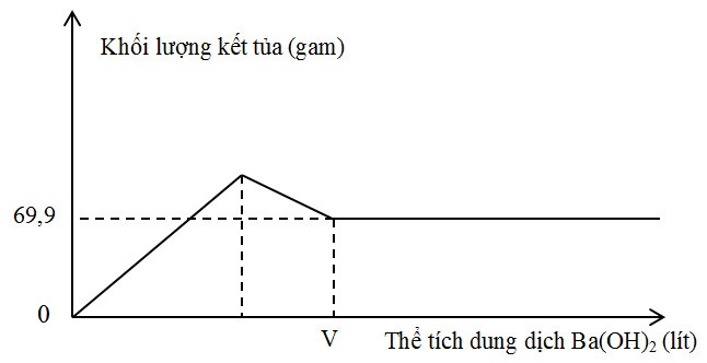 Nhỏ từ từ dung dịch Ba(OH)2 0,2M vào ống nghiệm chứa dung dịch Al2(SO4)3. Đồ thị biểu diễn sự phụ thuộc khối lượng kết tủa theo thể tích dung dịch Ba(OH)2 như sau: