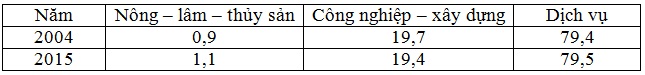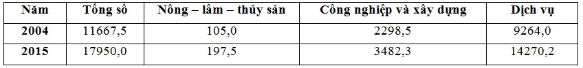 Cho bảng số liệu: GDP PHÂN THEO KHU VỰC KINH TẾ CỦA HOA KÌ NĂM 2004 – 2015 (Đơn vị: tỉ
