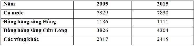 Cho bảng số liệu DIỆN TÍCH LÚA CẢ NĂM PHÂN THEO VÙNG NĂM 2005 VÀ NĂM 2015 (đơn vị: nghìn