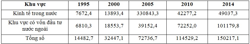 GIÁ TRỊ XUẤT KHẨU HÀNG HOÁ PHÂN THEO KHU VỰC KINH TẾ Ở NƯỚC TA GIAI ĐOẠN 1995 – 2014 (Đơn vị: triệu USD)