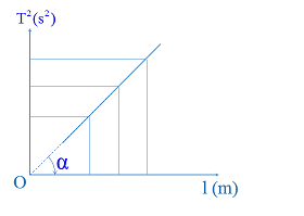 Áp dụng: \(T=2\pi \sqrt{\frac{l}{g}}\Rightarrow {{T}^{2}}=\frac{4{{\pi }^{2}}}{g}l\)