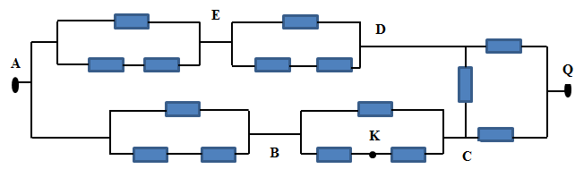 b) Mắc hai cực của nguồn vào hai điểm A và Q. Tìm theo U hiệu điện thế giữa K và E