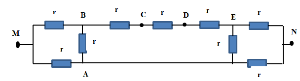 a) Hai cực của nguồn được mắc vào các điểm A và C. Hãy tính theo r điện trở tương đương của mạch điện này.