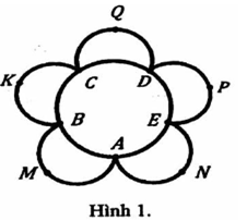 Hằng năm, trường THPT Chuyên KHTN có tổ chức chương trình đón Tết Trung thu đặc sắc mang tên Đêm trăng Tự nhiên. Trong dịp này, một nhóm học sinh đã thiết kế một mạch điện trang trí cho trại của lớp mình. Các bạn này mắc nối tiếp các bóng đèn nhỏ giống nhau và quấn theo một khung để tạo hình một bông hoa như hình 1. Năm viền cánh hoa giống nhau được nối điện với vòng tròn tại các điểm A, B, C, D, E và chia vòng tròn thành năm cung, mỗi cung có n bóng đèn (với n là một số tự nhiên). Trên mỗi viền cánh hoa có các điểm M, N, P, Q, K chia các viền cánh hoa thành hai nửa, mỗi nửa có n bóng đèn. Điện trở tương đương của một đoạn dây có n bóng đèn mắc nối tiếp là r. Dùng một nguồn điện có hiệu điện thế U không đổi để thắp sáng bông hoa này.