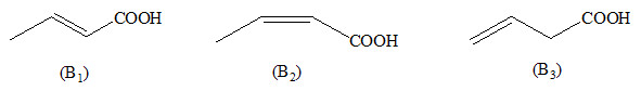 Một hợp chất hữu cơ A (C4H8O3) có chứa 1 cacbon liên kết với 4 nhóm khác nhau. Khi đun nóng A với H3PO4 đậm đặc thu được hỗn hợp gồm 3 chất hữu cơ B1, B2, B3 đều có công thức phân tử C4H6O2, trong đó B1 là sản phẩm chính và B2, B3 là sản phẩm phụ. Cho B1 phản ứng với Zn/H2SO4 thu được C (C4H8O2). Hợp chất A cho phản ứng với dung dịch axit cromic loãng tạo thành D (C4H6O3). Đun nóng D với hỗn hợp CaO-NaOH thu được E (C3H6O) là một dung môi hữu cơ dễ bay hơi. Xác định công thức cấu tạo của các chất A, B1, B2, B3, C, D, E.