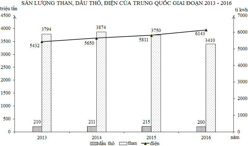Theo biểu đồ, nhận xét nào sau đây đúng với ngành công nghiệp năng lượng của Trung Quốc?
