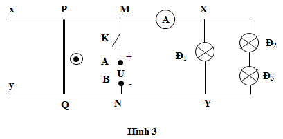 Cho mạch điện như hình vẽ (Hình 3), trong đó: - Đèn Đ1 có điện trở R1, đèn Đ2 có điện trở