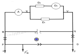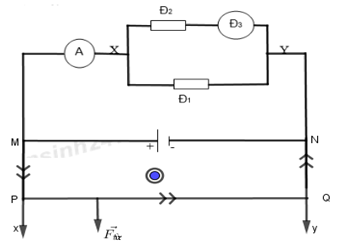 - Thanh kim loại PQ có điện trở đáng kể, đặt tiếp xúc trên hai thanh ray kim loại Mx và Ny song song, cùng nằm trên mặt phẳng ngang. Thanh PQ ở trong vùng từ trường đều, có đường sức từ thẳng đứng và chiều như hình 3.