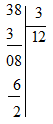 Thực hiện đặt tính chia \(38:3\)