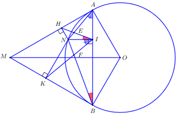 3) Gọi \(E\) là giao điểm của \(AN\) và \(IH\), \(F\) là giao điểm của \(BN\) và \(IK\). Chứng minh tứ giác \(IENF\) nội tiếp được trong đường tròn.