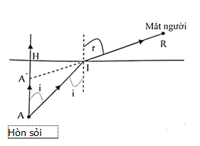 Một người ngồi trên bờ hồ nhúng chân vào nước trong suốt. Biết chiết suất của nước là