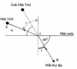 Một thợ lặn dưới nước nhìn thấy Mặt Trời ở độ cao 600 so với đường chân trời. Độ