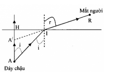 Một bể chậu cao \(h\) chứa đầy nước, một người đặt mắt sát mặt nước nhìn xuống đáy