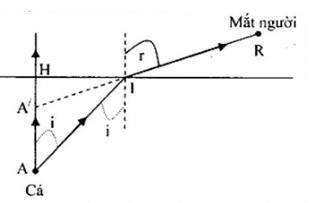 Mắt người và cá cùng cách mặt nước là 60cm, cùng nằm trên một mặt phẳng vuông góc với