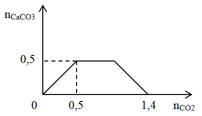 + Tại nCO2 = 0,5 mol thì kết tủa đạt cực đại ⟹ nCa(OH)2 = nCO2 = ? ⟹ b = ?