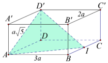Cho hình hộp chữ nhật \(ABCD.A'B'C'D'\) có \(AB = 3a,BC = 2a,AD' = a\sqrt 5 .\) Gọi \(I\)
