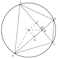 Cho đường tròn \(\left( C \right)\) có tâm \(I\) và có bán kính \(R = 2a.\) Xét điểm \(M\) thay đổi sao cho \(IM = a.\) Hai dây \(AC,\,\,BD\) đi qua điểm \(M\) và vuông góc với nhau \(\left( {A,\,\,B,\,\,C,\,\,D \in \left( C \right)} \right).\) Tìm giá trị lớn nhất của diện tích tứ giác \(ABCD.\)