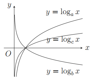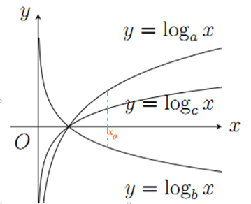 Cho các hàm số \(y = {\log _a}x\), \(y = {\log _b}x\), \(y = {\log _c}x\) có đồ thị như hình vẽ bên.