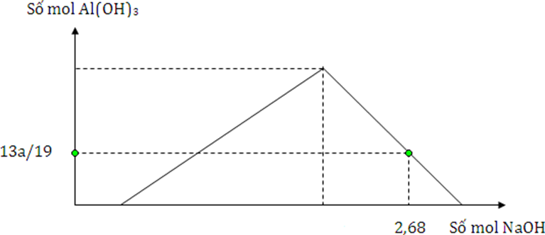 - Xét đồ thị: Tại điểm nNaOH = 2,68 mol thì Al(OH)3 đã bị hòa tan một phần.