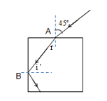 Một tia sáng đi từ không khí vào một khối thủy tinh tại điểm A và sau đó phản xạ toàn phần tại điểm B. Hỏi chiết suất của thủy tinh có giá trị nhỏ nhất là bao nhiêu?