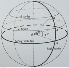 Cuối năm học, các bạn lớp 9A chia làm hai nhóm, mỗi nhóm chọn một khu vườn sinh thái ở Bắc bán cầu để tham quan. Khi mở hệ thống định vị GPS, họ phát hiện một sự trùng hợp khá thú vị là hai vị trí mà hai nhóm chọn đều nằm trên cùng một kinh tuyến và lần lượt ở các vĩ tuyến \({47^0}\) và \({72^0}\)