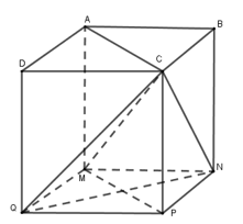 Cho hình lập phương \(ABCD.MNPQ\) cạnh bằng \(a.\) Tính khoảng cách từ điểm \(A\) đến mặt phẳng \((CNQ).\)