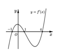 Cho hàm số \(f\left( x \right)\) liên tục trên \(\mathbb{R}\) và có đồ thị \(f'\left( x \right)\) như hình vẽ bên. Bất phương trình \({\log _5}\left[ {f\left( x \right) + m + 2} \right] + f\left( x \right) > 4 - m\) đúng với mọi \(x \in \left( { - 1;4} \right)\) khi và chỉ khi