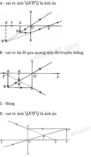 Chọn phương án đúng về cách vẽ ảnh \(A'B'\) của vật sáng \(AB\)trong các trường hợp sau: