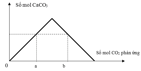 Thổi từ từ khí CO2 đến dư vào dung dịch chứa 0,12 mol Ca(OH)2 . Sự phụ thuộc của số mol kết tủa thu được vào số mol CO2 phản ứng được biểu điễn theo đồ thị sau: