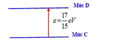 Để electron chuyển từ trạng thái có mức năng lượng C lên trạng thái có mức năng lượng D thì cần nhận photon có năng lượng: \(\varepsilon ={{E}_{D}}-{{E}_{C}}\)