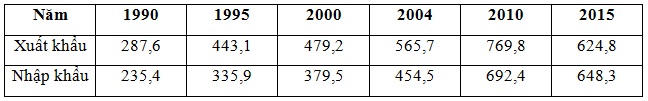 Biểu đồ thích hợp nhất thể hiện giá trị xuất, nhập khẩu của Nhật Bản giai đoạn 1990 - 2015 là