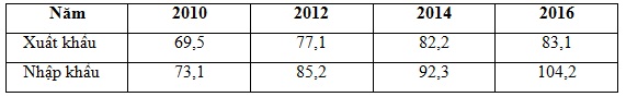 (Nguồn: Niên giám thống kê Việt Nam 2016, NXB thống kê, 2017)