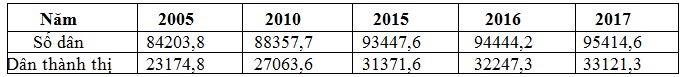 TỔNG SỐ DÂN VÀ SỐ DÂN THÀNH THỊ CỦA NƯỚC TA GIAI ĐOẠN 2005-2017