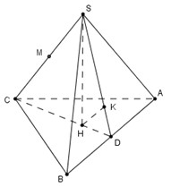 Cho hình chóp tam giác đều \(S.ABC\) có \(SA = 2a,AB = 3a.\) Gọi \(M\) là trung điểm \(SC.\) Tính khoảng cách từ \(M\) đến mặt phẳng \(\left( {SAB} \right)\).