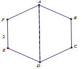 Cho hình lục giác đều \(ABCDEF\) có cạnh bằng \(2\) (tham khảo hình vẽ). Quay lục giác xung quanh