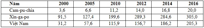 (Nguồn: Niên giám thống kê Việt Nam 2016, NXB Thống kê, 2017)